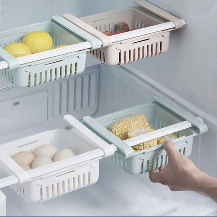 Este cajón retráctil aprovecha cada centímetro, drena la humedad y te da acceso rápido a tus alimentos. ¡Espacio, limpieza y frescura, en un solo clic!”